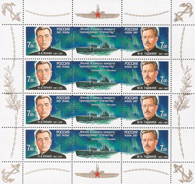 Nikolai Alexandrowitsch Lunin (1907-1970) als ukrainischer Konteradmiral der Sowjetischen Marine, der im Zweiten Weltkrieg ein legendärer U-Boot-Kapitän im Nordpolarmeer war, dort viele nazideutsche Frachter versenkte, 1942 Hitlers Parade-Schlachtschiff ”Tirpitz“ torpedierte, seinen Namen später vielen Straßen in russischen Städten, gar einer Schule im arktischen Murmansk und 1965 in Odessa einem ukrainischen Passierdampfer lieh: "Admiral Lunin"; zu seinem 100. Geburtstag erschien 2007 sein Porträt sogar auf einer russischen Briefmarke: