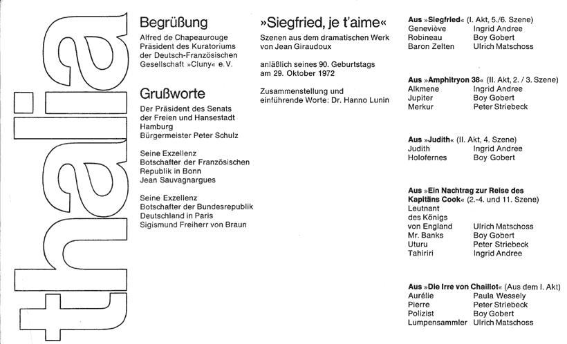 Giraudoux-Matinee im Thalia Theater Hamburg