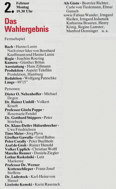 Michael Degen, Karl-Heinz von Hassel und Volkert Kraeft im "Wahlergebnis" des ZDF