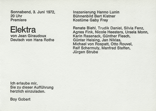Einladungskarte zu "Elektra" im Thalia Theater Hamburg