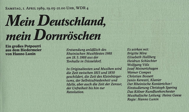 Eine Biedermeier-Revue für den Westdeutschen Rundfunk
