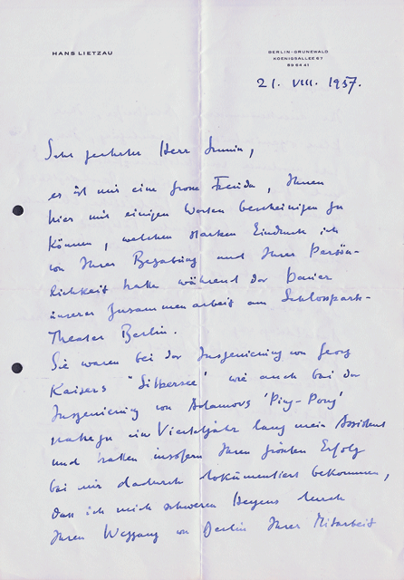 Brief an Hanno Lunin — Berlin-Grunewald, 21. August 1957