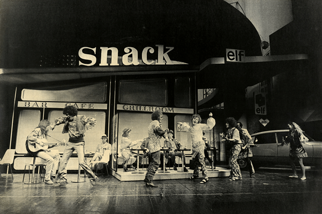 Der Regisseur Hanno Lunin … verschärft den Kontrast zwischen lapidarer Gangstersprache und Poesie. Clochards und kleine Leute treten als Hippies auf. Aus dem schmuddeligen Café ist eine blitzblanke Snack-Bar geworden, die 'Makker' fahren in einem veritablen Citroën vor, über das riesige unterirdische Röhrensystem flimmern zum Schluß filmische Blumenmuster. Wir erkennen staunend, wie legitim diese verjüngte Ausstattung (Ulrich E. Milatz) ist.«